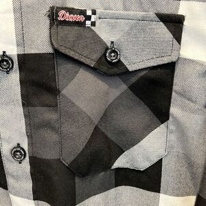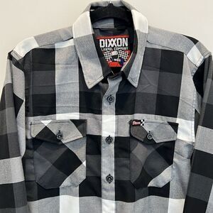 Mens Dixxon Flannel Co Finish Line D Tech gray black white plaid button shirt