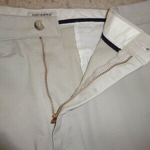 Men's Dockers Classic Fit Pants Khaki Tan W36 L32 Zip/Button Closure Pockets
