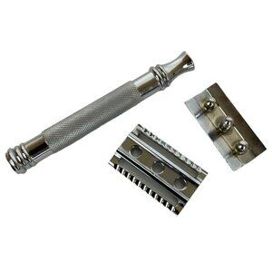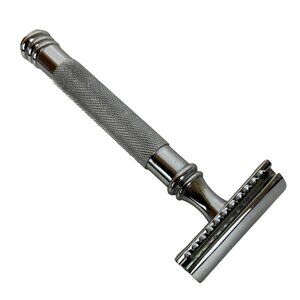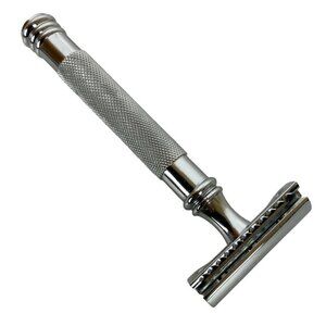 Mens Double Edge Safety Razor Textured Chrome Handle Sleek Design Grooming Tool