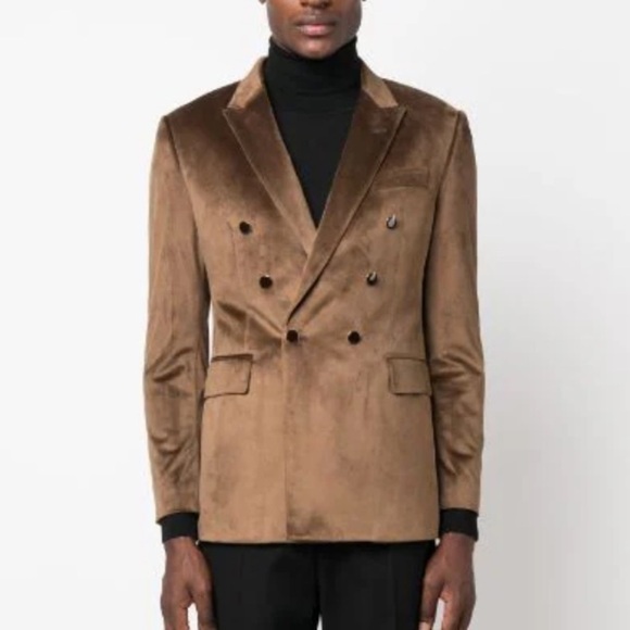 Elevate your style with this sophisticated double-breasted brown blazer. Perfect for any formal occasion, this blazer offers a sleek and modern look.