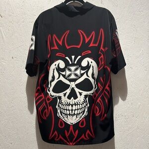 Men’s Dragonfly Clothing Company Rockabilly Skull Biker Short Sleeve Button Down