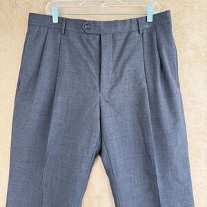 Men’s Dress Pants Gray Pleated Trousers Size 36x24 Classic Formal Office
