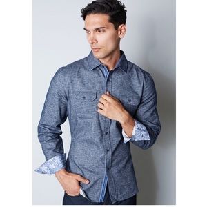 Men's urban style slim-fit blue shirt with design cuff sleeves. True to sizes. Meant to fit slim.