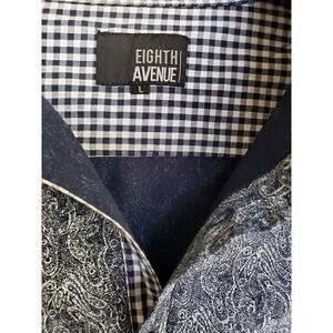 Men's Dress Shirt L Button Down Blue Paisley Designer Casual Shirt Large NWOT