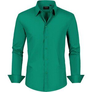 Men's Dress Shirts Stretch Stain Shield Long Sleeve Solid Button Down Shirts