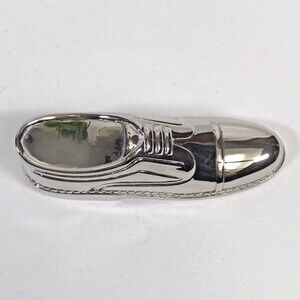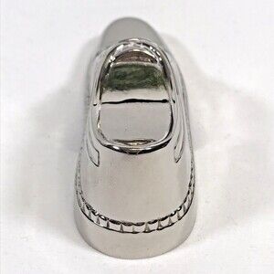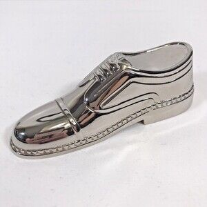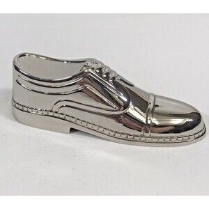 Men's Dress Shoe Silver Plate BOTTLE OPENER Barware Accessory. Salesmen's Sample. The last picture shows the bottle opener in the heel of the shoe. Heavy, would even make a great paperweight. Excellent like new condition. No scratches, dents, or marks. Super shiny and highly detailed. Silver plate over base metal. Measures 4.5" long, 1.25" tall, 1.5" wide.