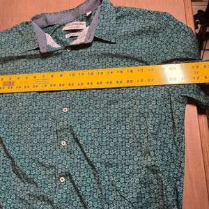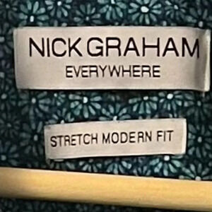 Add a pop of color to your wardrobe with this stylish Nick Graham short sleeve shirt. Featuring a vibrant navy and green print, this shirt is perfect for making a statement. The high-quality fabric ensures comfort and durability, while the modern fit offers a flattering silhouette. Pair it with shorts or chinos for a casual look, or dress it up with trousers for a more polished ensemble. Elevate your style with this versatile shirt today!