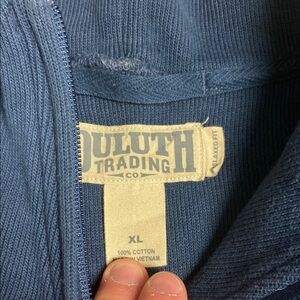 Stay warm and stylish with this blue half-zip sweater. Perfect for any casual occasion.