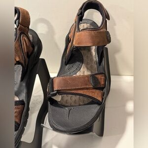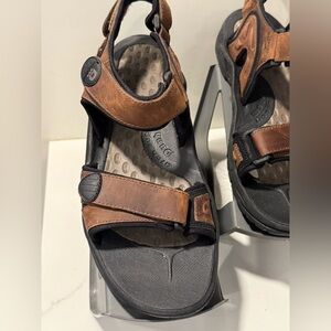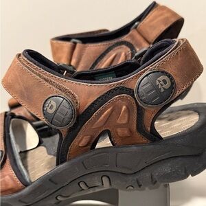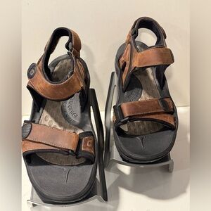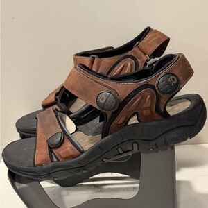 NWOT never worn. Cardboard is still in one of the sandals. In new condition. Size 12. Brown Leather upper. Rubber nonslip soles.