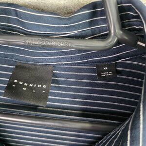 Mens Dunning Golf Blue White Striped Golf Polo Shirt Short Sleeve Polyester XL