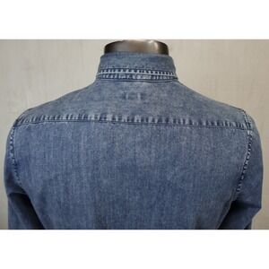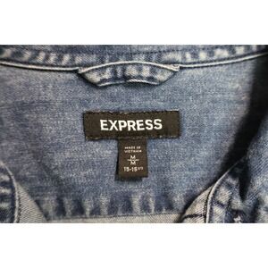 Mens EXPRESS Blue Shirt Size M Button Front Cotton Denim Loop Native Aztec 15.5