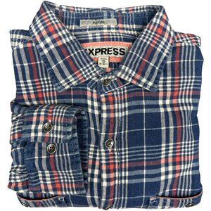 Men's EXPRESS Fitted Thin Flannel, Lined Button Down Long Sleeve | Size M