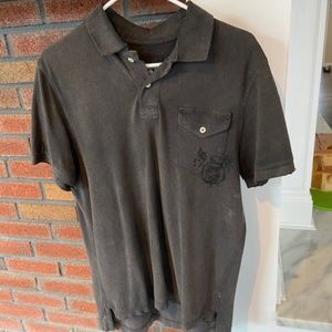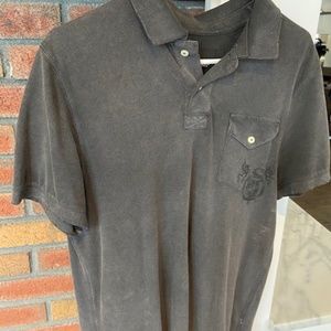 Note: This polo shirt has distress marks on collar and sleeves by design from Express.