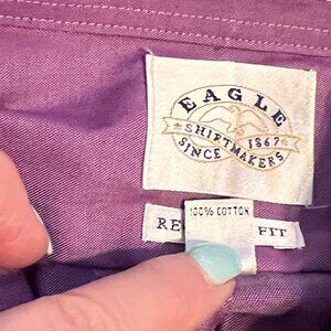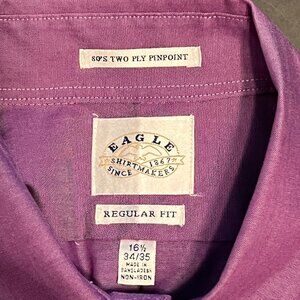 Men's Eagle Shirt 16.5-34/35 Purple 100% Cotton Button Down Dress