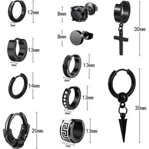 Mens Earrings 11 Pairs Stainless Steel Small Hoop Earrings Cross Dangle Men Gift