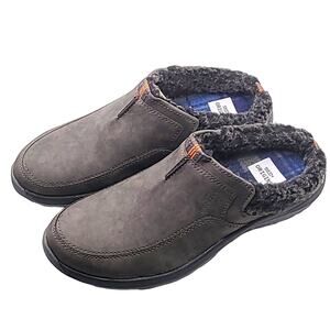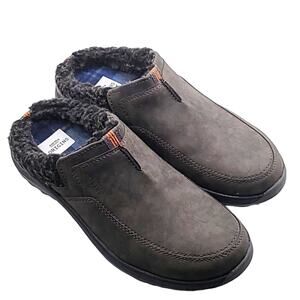 Men’s clogs, Earth Origins Daxton, slip-on comfort shoes, suede clog shoes, faux fur lined clogs, brown men’s shoes, size 8.5 slip-ons, casual men’s footwear, Earth Origins men’s slip-ons, house shoes