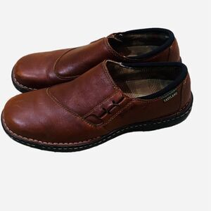 These men’s eastland slip on stretch loafer is stylish and comfortable. Like new condition. Rubberized sole with Overstitching edges. Genuine leather upper. Euc