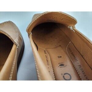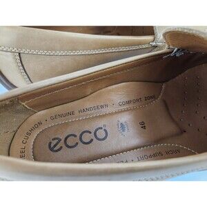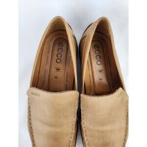 men's moccasin loafers from ECCO. Sz 46, which equals mens 12/12.5 US per the Ecco website. These shoes are pre-owned and do have a rub mark on the outside of the right shoe as shown in photos. Generally, very good pre-owned condition otherwise.
