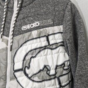 Mens Ecko Unltd Camo Quilted Zip-Up Hooded Jacket Size Small Gray