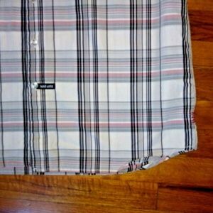Men's Ecko Unltd. Classic material plaid button down shirt w/pocket size medium White pink gray. Short sleeves. Relaxed fit. left pocket.