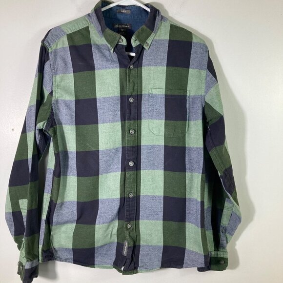 Mens Eddie Bauer Buffalo Check Flannel Green Blue M