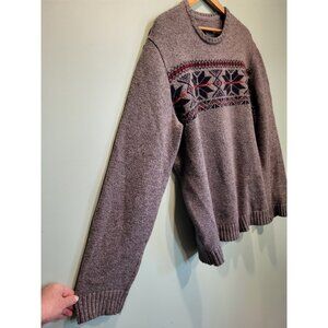 Mens Eddie Bauer Gray Fair Isle Nordic Wool Blend Crewneck Sweater Sz XLT