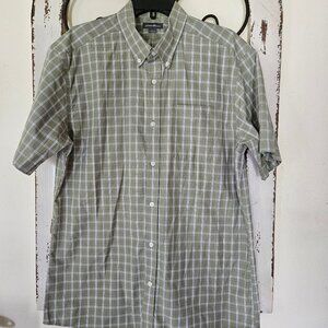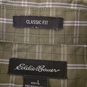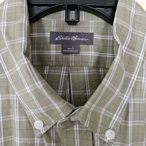 Men's Eddie Bauer Green Plaid Button up Collar Short Sleeve Shirt Large,