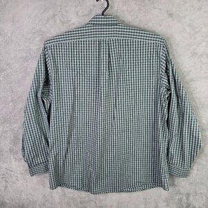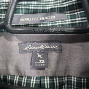 Mens Eddie Bauer Green & White Plaid Shirt Button Up Long Sleeve Cotton Size 2XL