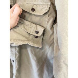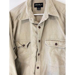 Men's Eddie Bauer Large Button Up Shirt Tan 100% Cotton Thick Flannel Jacket Shirt 22