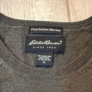 Mens Eddie Bauer Men’s 100% Merino Wool Olive Green Sweater Size XL