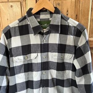Men's Eddie Bauer Small Long Sleeve Button Front Shirt Plaid Fleece Lined
