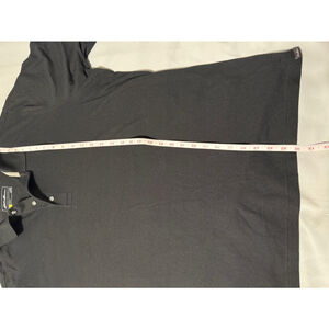 This is a black, short-sleeved polo shirt by Eddie Bauer. It is size XL and is in pre-owned condition. The shirt has a button-down collar and a single button placket. It is made of a soft, breathable fabric.