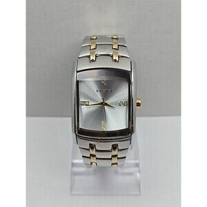 Mens Elgin Two Tone Rectangle Tank Quartz Watch Diamond Accent 33mm New Battery
