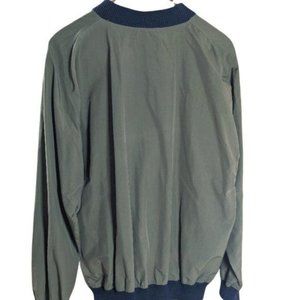 Description: Crewneck with crossover pullover windbreaker for casual wear. Made in the USA. The neck, cuffs, and waistband are all stretchy sweater-like materials. Perfect addition to your favorite dark jeans. Slash front pockets.