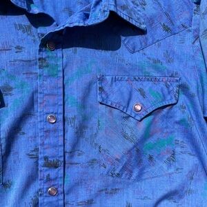 Men's Ely Cattleman Western Shirt Blue Art 15 1/2 Ranch Cotton Cowboy Rodeo Work. Cotton blend.