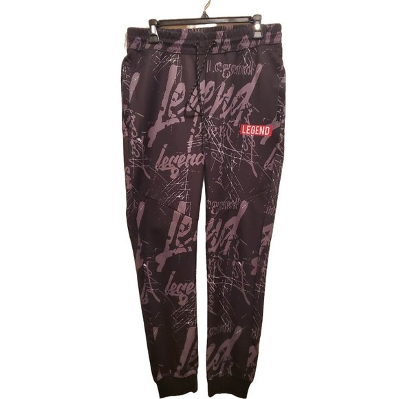 Men's Encrypted Black and Gray Legend Print Joggers Size Large