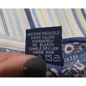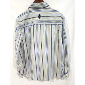 Mens English Heroes Long Sleeve Blue Green Striped Button Down Shirt - Size L
