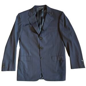 Men's Ermenegildo Zegna 100% Wool Italian Suit Navy Stripe Pleated 40R 32x30