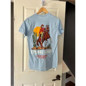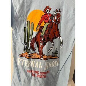 Mens Eternal Rodeo T-Shirt Small S RF Brands Light Blue Skeleton Cowboy Graphic