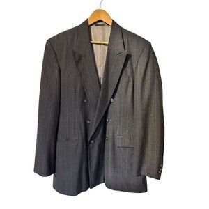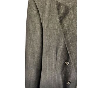 Elevate your wardrobe with the Executive Collection Blue Blazer, a sophisticated choice for the modern man. This double-breasted blazer features a striking pinstripe pattern and peak lapels, exuding timeless elegance. The padded shoulders and classic fit ensure a sharp silhouette, while the polyester lining offers comfort for all-day wear. Perfect for business meetings, formal events, or any occasion where you want to make a lasting impression.