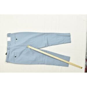 These men's Express dress pants, in a stylish light blue, are a great addition to any wardrobe. Made from a comfortable blend of 97% cotton and 3% spandex, they offer both style and stretch. They are designed with a pleated front and a straight leg fit for a classic and professional look. The pants feature a button and zip closure, with convenient front and back pockets. With an inseam of 30 inches and a waist of 31 inches, these pants are a US size 31x30. The item appears to be in new condition with original tags attached. It is made in China and has a regular size type, perfect for various occasions from business casual to semi-formal events. See images for detailed measurements.