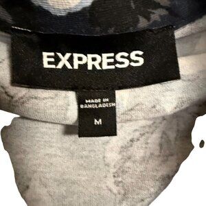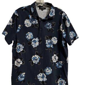 Men's Express Blue Polo Shirt SZ Medium Floral Resort Aloha