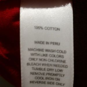 Machine wash cold with like colors. Only non-chlorine bleach when needed. Tumble dry low. Remove promptly. Cool iron on reverse side only.