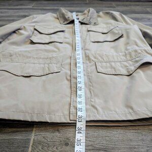 This men's khaki colored jacket from Express is a reliable option for any wardrobe. With four pockets and water-resistant features, it provides both style and practicality. The size XL fits comfortably for regular-sized men. The khaki color adds a touch of sophistication, making it perfect for any occasion.