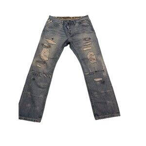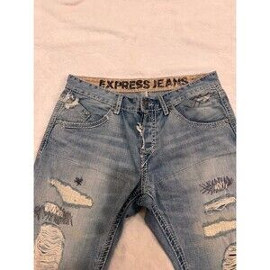 Men's Express Rocco Low Rise/Boot Cut Holey Jeans Size 34X32