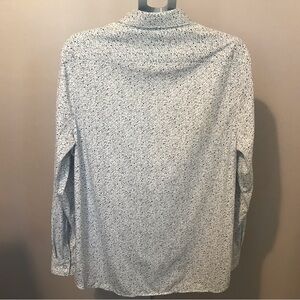 Elevate your style with this fun Express large slim fit white patterned shirt with blue specks, Perfect for any occasion. Soft stretchy material. In great preowned condition