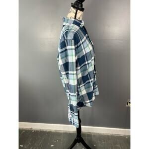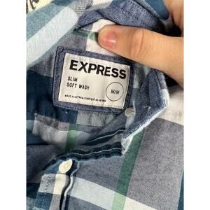 Men's Express Slim fit Soft wash blue white and green button up plaid shirt