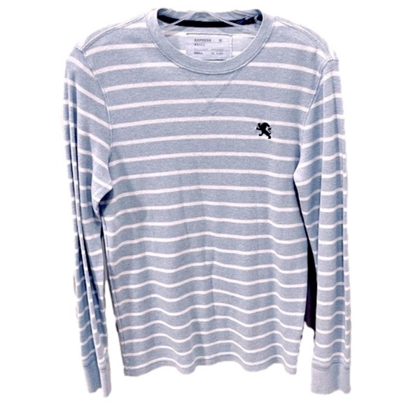 Men’s Express baby blue shirt with white stripes.