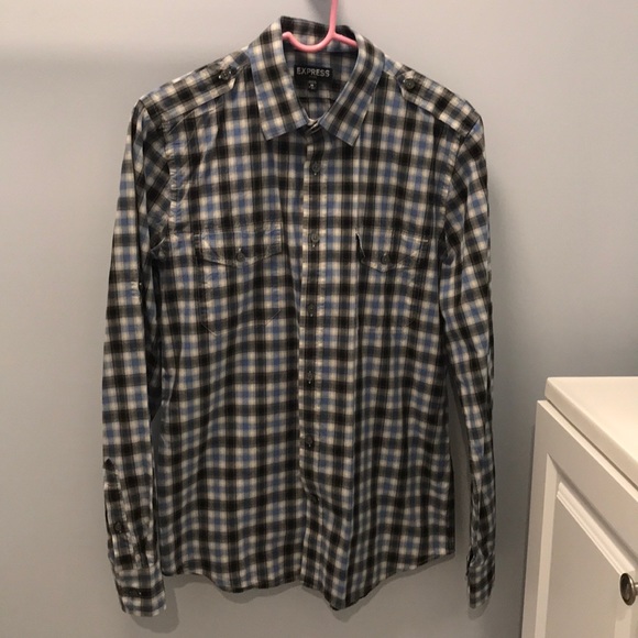 Men’s - Express - mostly blue and gray with some off white/black accent colors - button down - never worn’