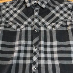 Black and gray with small thin blue strips. Buttons have marble appearance. 2 button pockets on front. Great used condition. No tears, stains or piling.